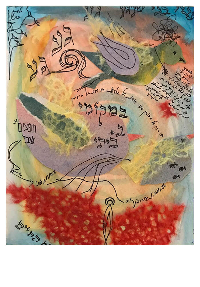 שלב העבודה מחבר את החומר האישי עם חומרי היצירה. ההנחיה היא להניח שכבה אחרי שכבה פנים אל חוץ, מארג חומרים לכדי מסר אישי